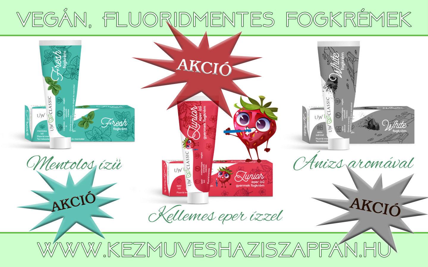 Közeli lejáratú, fluoridmentes fogkrémek kerültek akcióba nálunk! Vegán magyar termékek, amelyek nem tartalmaznak mesterséges színezéket!