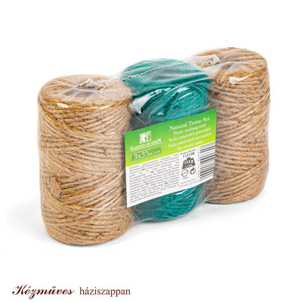 100% kenderből készült, fehér, natúr és zöld színű, sodrott kötözőzsinór, madzag.